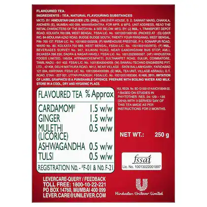 Includes tulsi, ashwagandha, mulethi, ginger and cardamom